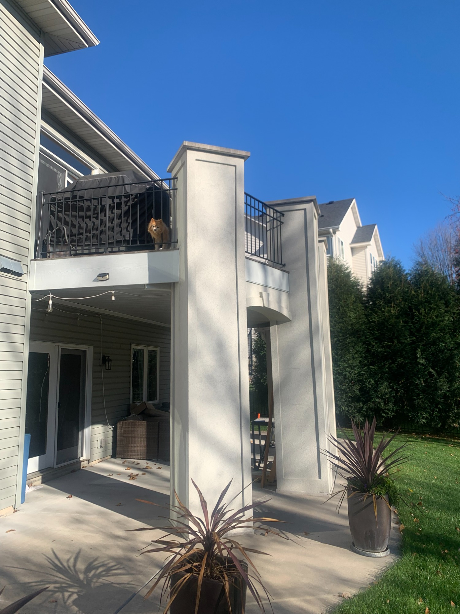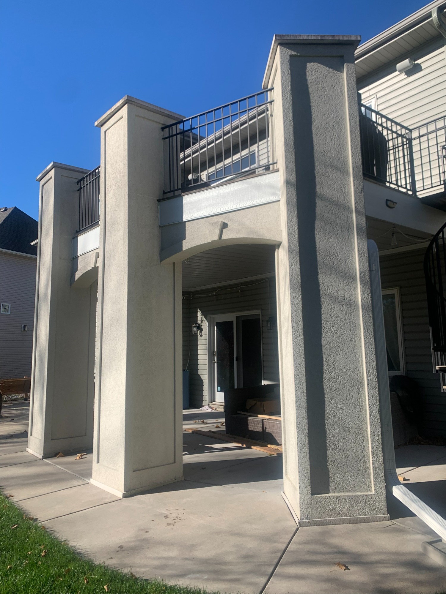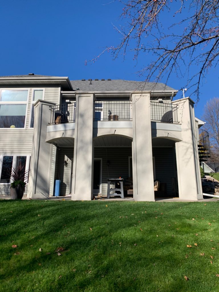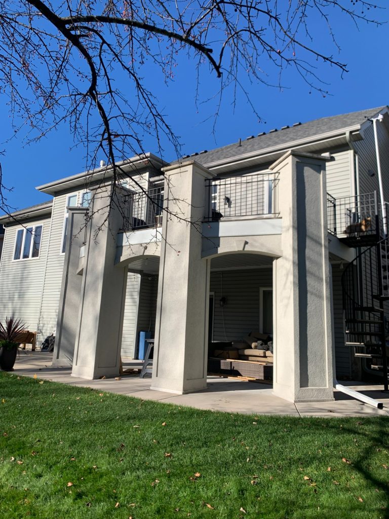 Stucco Columns and Ipe Wood Deck with Circular Staircase