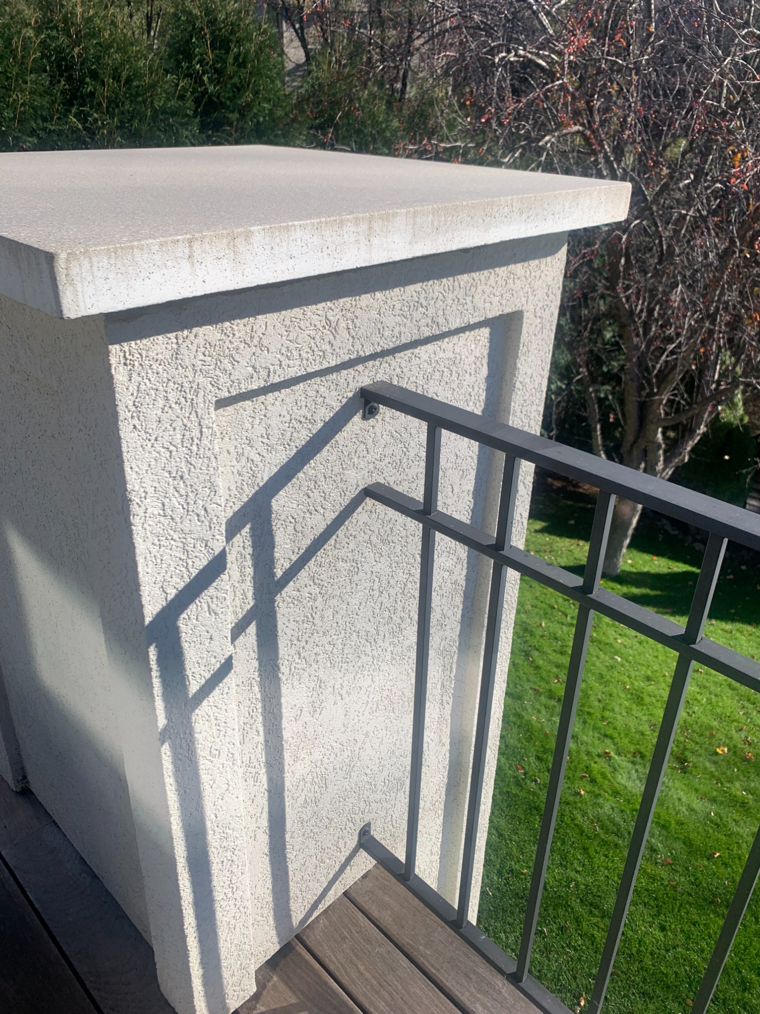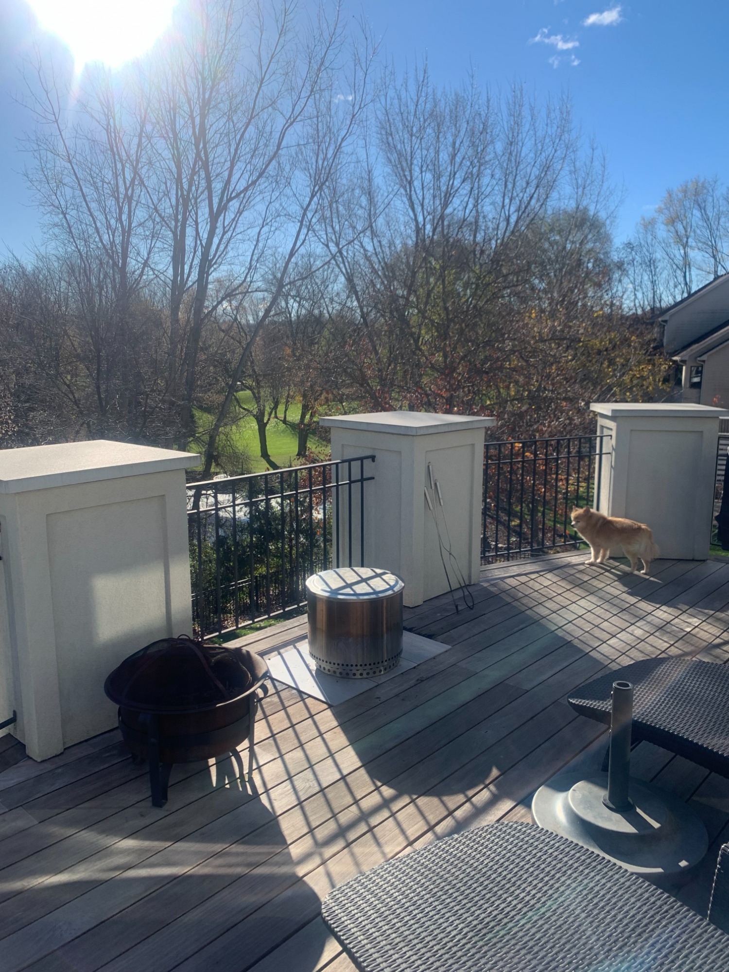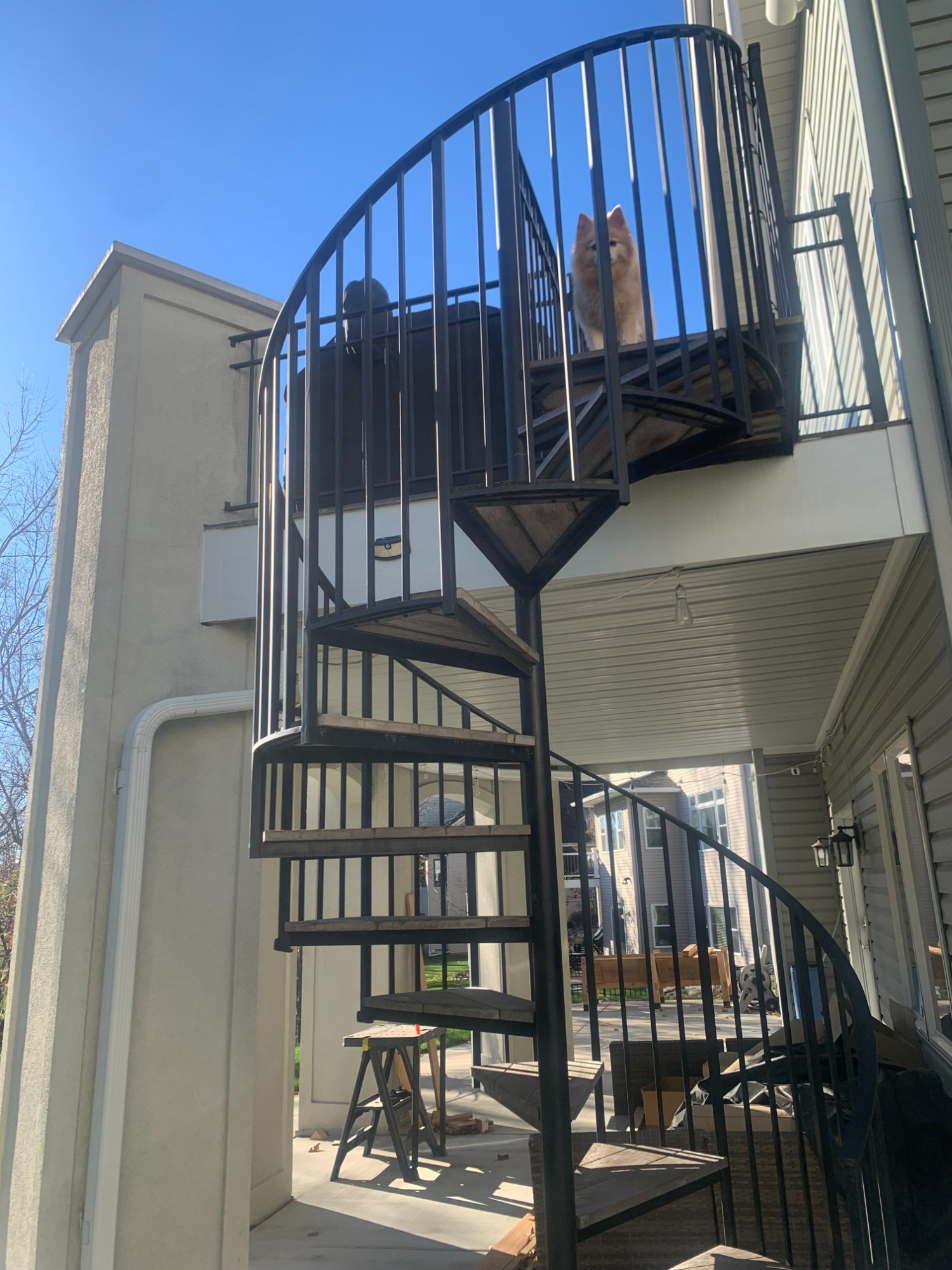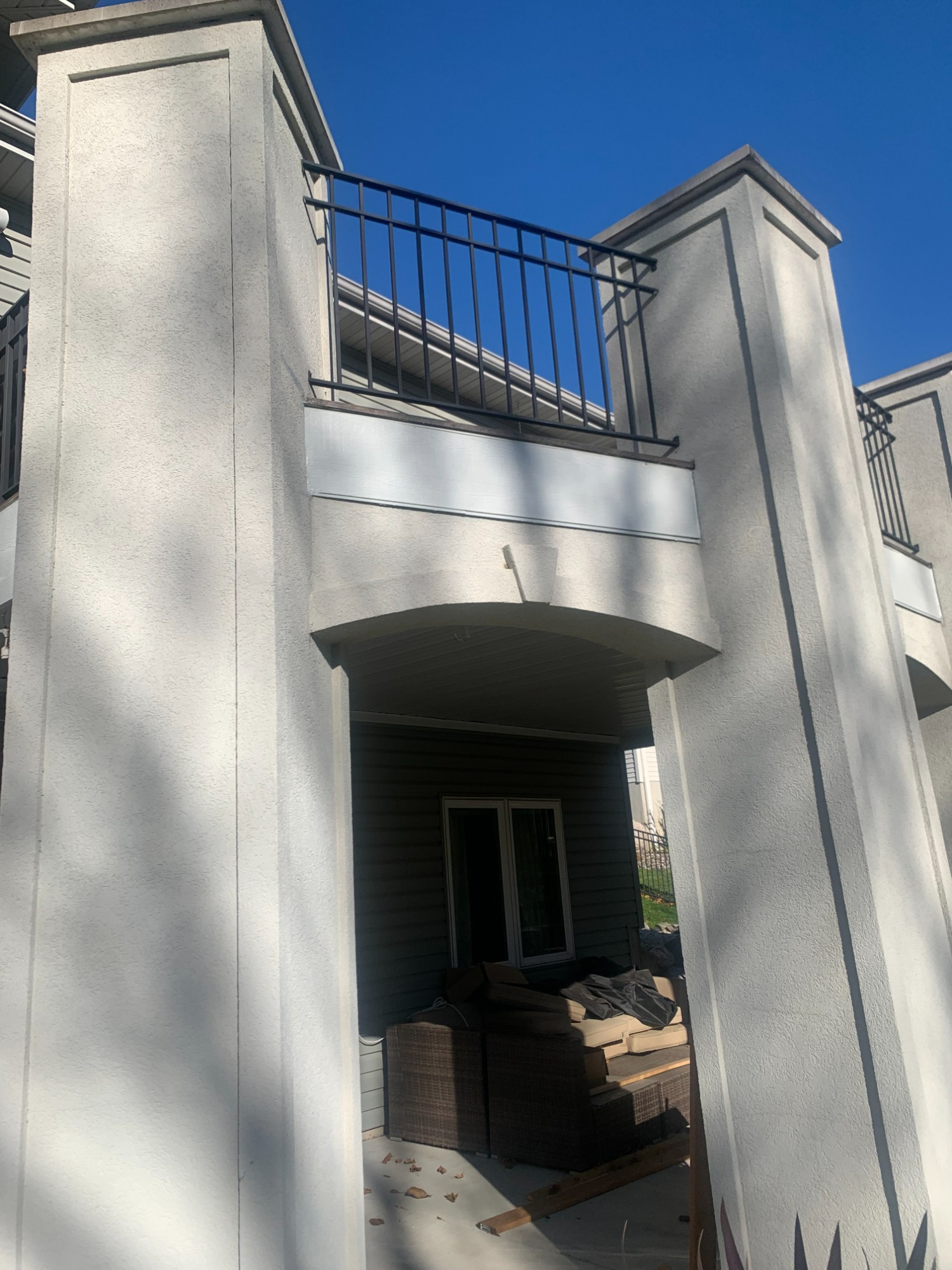 Stucco Columns and Ipe Wood Deck with Circular Staircase