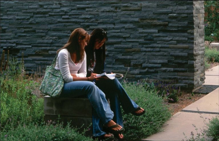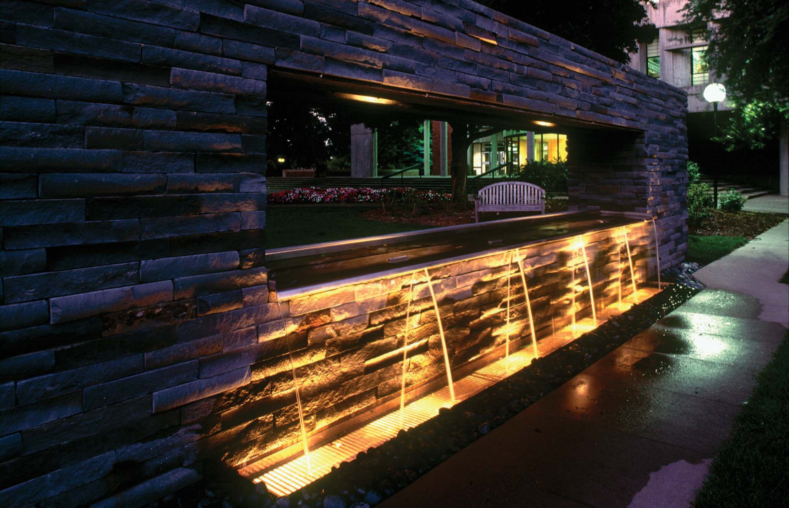 Stone Wall and Fountain at Hamline University