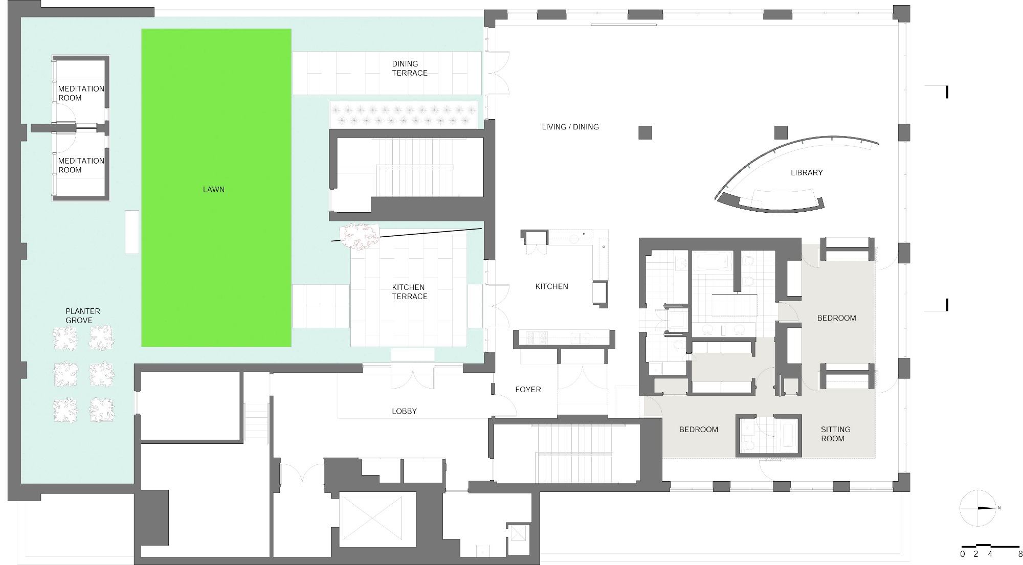 Plaza and Lawn with Water feature